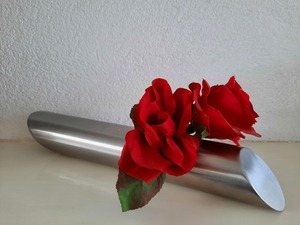2023rvs vaasje dat horizontaal geplaatst wordt.