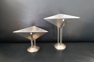 roestvrijstalen objecten o.a. fraai gevormde schalen, stevig uitgevoerde vazen/potten , kandelaars en lampen.