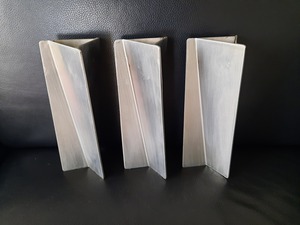 2017De rvs leeslamp is gemaakt van rvs 80x5 . De 2 rvs staanders zijn in spiegelbeeld geheel getorst om het gewenste effect te krijgen. De foto is een voor- en zijaanzicht.