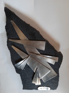 roestvrijstalen vormen en figuren op lei- en hardsteen wandplaten